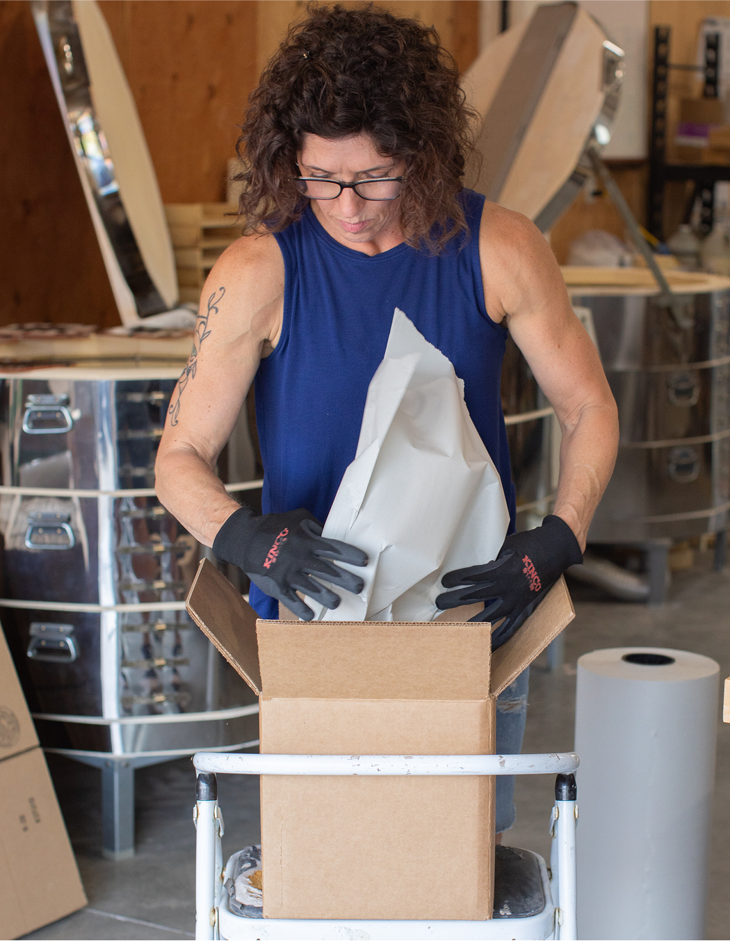 Sorting, wrapping individual tiles, boxing them, palletizing, and securing the entire pallet